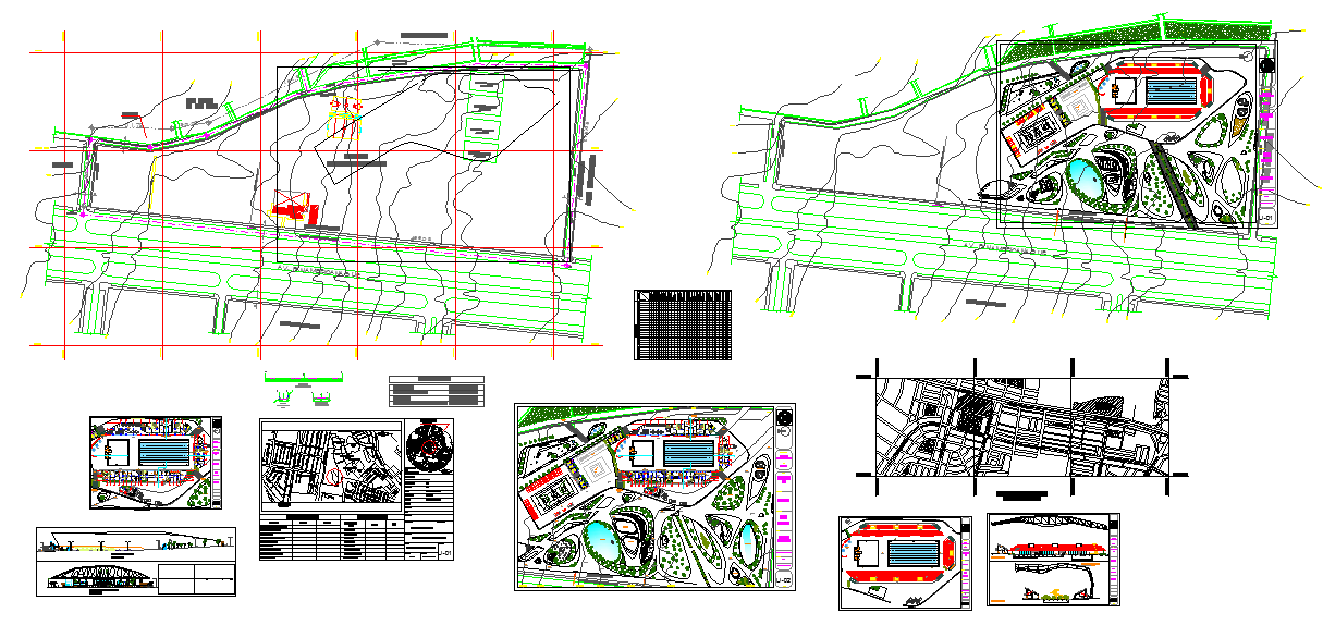 This Club House Project Detail drawing showcases a complete site plan featuring landscaping, elevation views, and building layouts. The design includes open green areas, pathways, parking spaces, and water bodies that add both function and aesthetic appeal. It demonstrates efficient zoning of amenities and structural spaces to ensure smooth movement and environmental balance.
