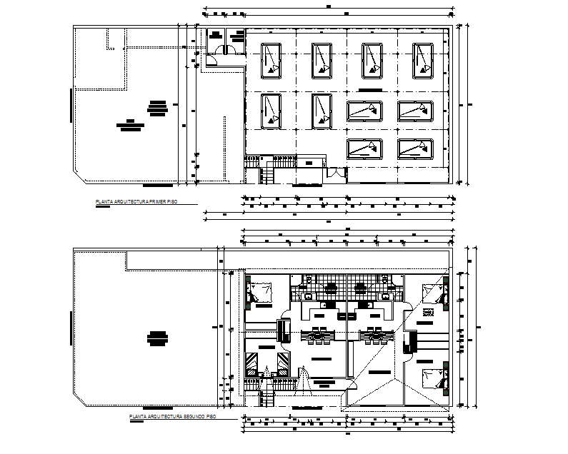 Hostel layout plan dwg file, all furniture detail of a hostel is shown, single bed detailing, kitchen and dining layout etc