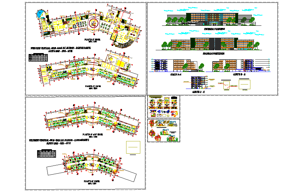 This 4 Star Hotel Design DWG File showcases a detailed architectural and interior layout that includes floor plans, elevations, and sectional drawings. The design reflects modern hospitality standards with a strong focus on comfort, aesthetics, and functionality. It features luxurious guest rooms, dining areas, lobbies, and recreational spaces organized for maximum efficiency and style.