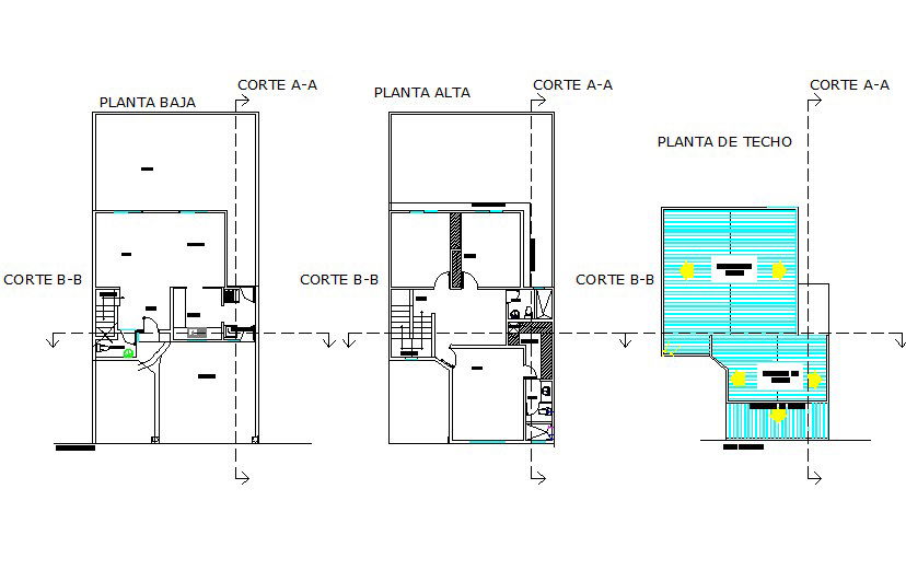 Water installation single housing plan detail dwg file, with section line detail, cut out detail, ground floor to terrace plan detail, etc.