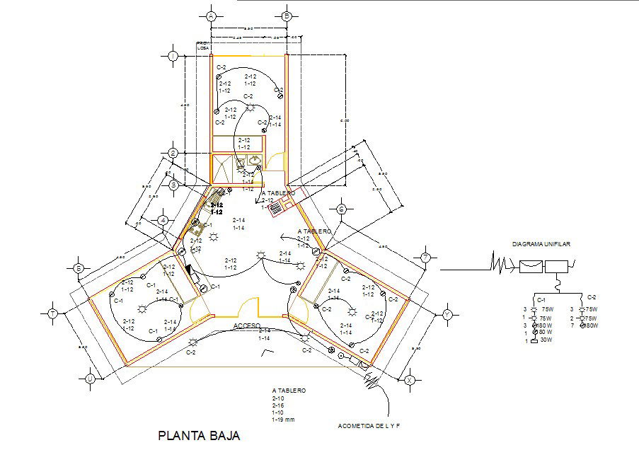Electrical house plan detail dwg file, including circuit detail, main line power detail, dimension detail, naming detail, etc.