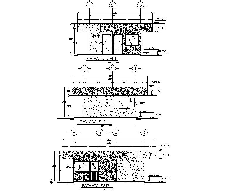 Elevation industrial plant detail dwg file, including front elevation view detail, right elevation view detail, left elevation view detail, etc.