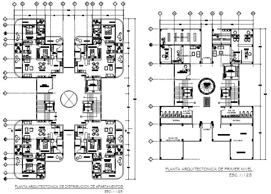 Architect plan detail dwg file, with ground floor and first floor detail, center line plan detail, dimension detail, naming detail, etc.