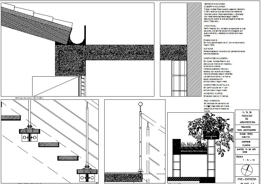 Stair section detail dwg file, including north direction detail, plant detail, hand reeling detail, etc.