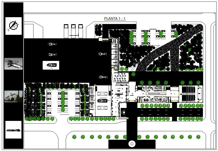 Plot layout ship yard detail dwg file, including car parking detail, north direction detail, landscaping detail in plant and tree detail, etc.