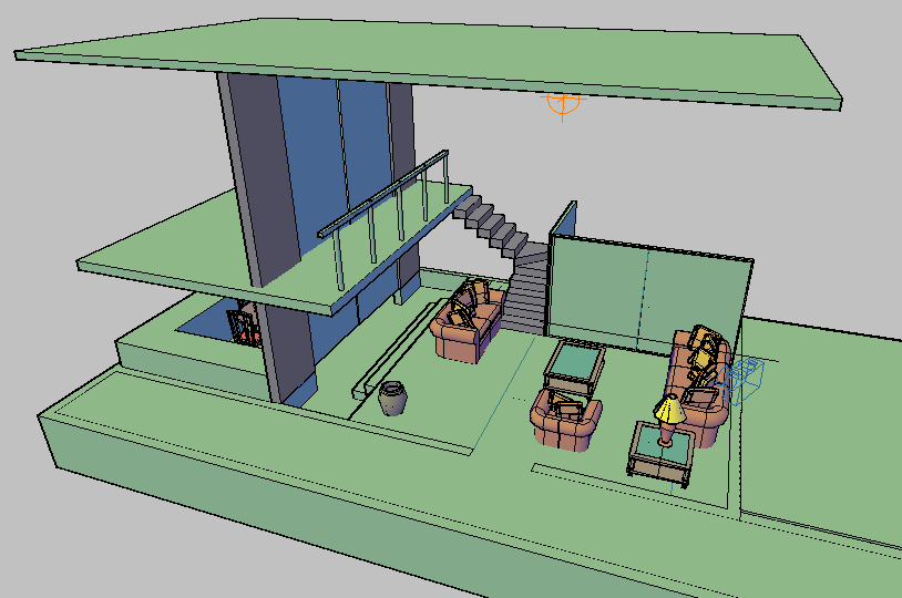 Preview of camera and its location in family house 3d design dwg file in 3d view with floor view,wall,Wall support,stair and balcony view,sofa view with pot view with interior design location in 3d view.