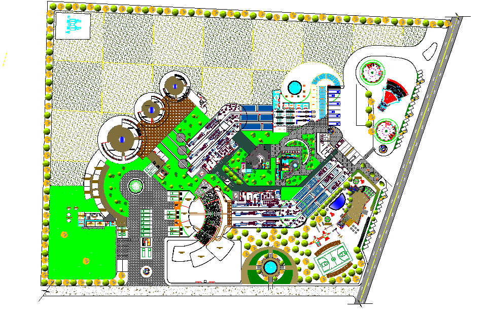 Municipals laughter house detail dwg file, with landscaping detail in tree and plant detail, building detail, etc.