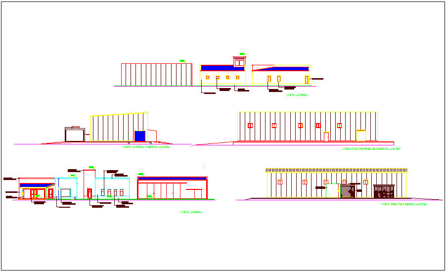 Elevation view with different axis of dairy plant dwg file in elevation with view of