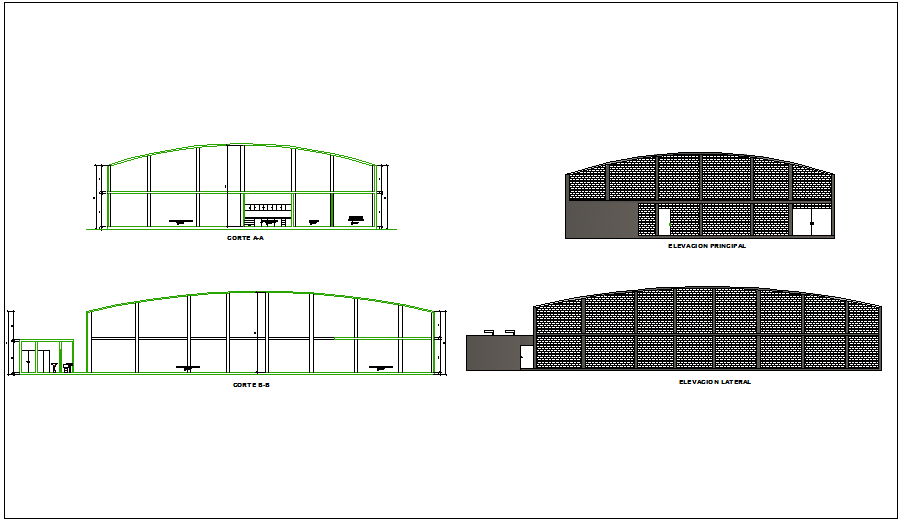 Different axis section and elevation view for oil factory dwg file