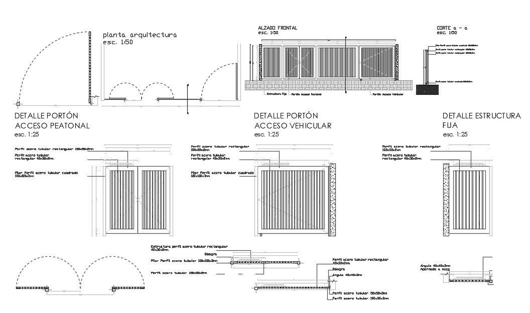 Gate Detail dwg file, Drawing labels, details, and other text information extracted from the CAD file.