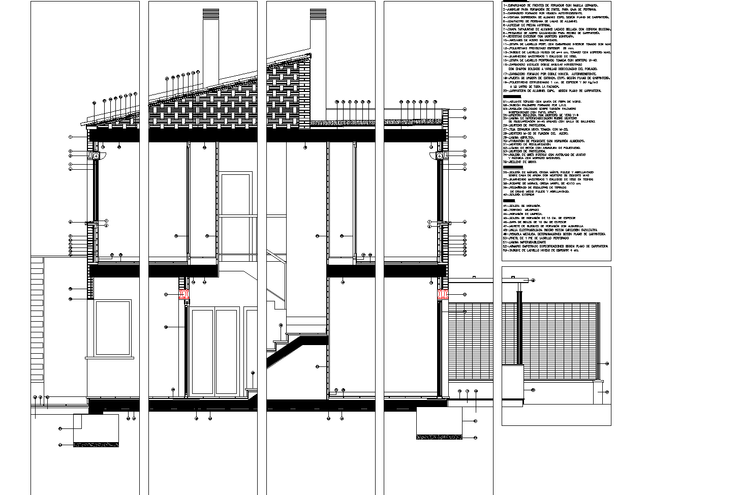 Structural section plan. The front elevation is given here with dimensions and details. For more details, it is given near the elevations. Elevation with detailed paneling.