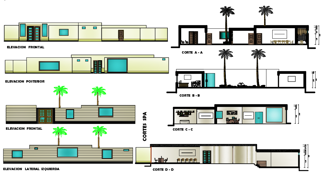 Spa project management dwg file, Front and side elevation of Spa project elevation of glass detail, with dimensions in AutoCAD format.
