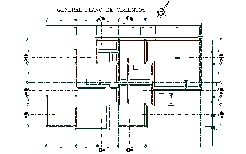 General construction view for house dwg file in plan with view of area view, wall and column view and different types of section view with stair view with necessary dimension in plan.