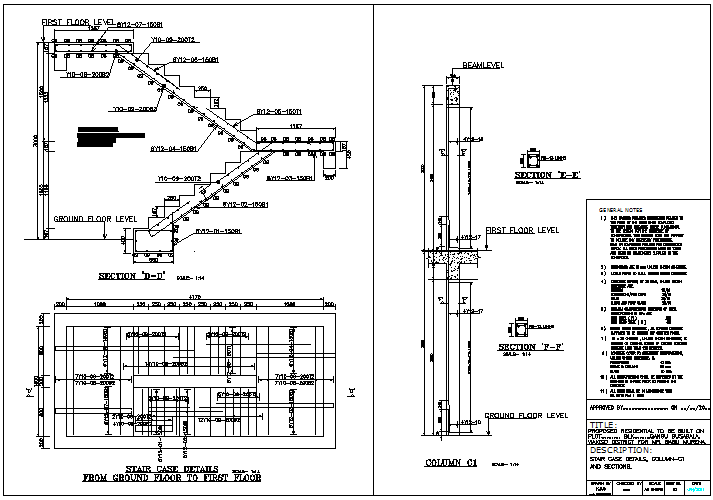 Stair plan and section detail dwg file, with riser and tread dimension detail, bolt nut detail, dimension detail, naming detail, etc.