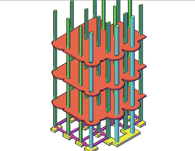 Structure 3 D plan detail dwg file, with column and beam detail, foundation plan detail, etc