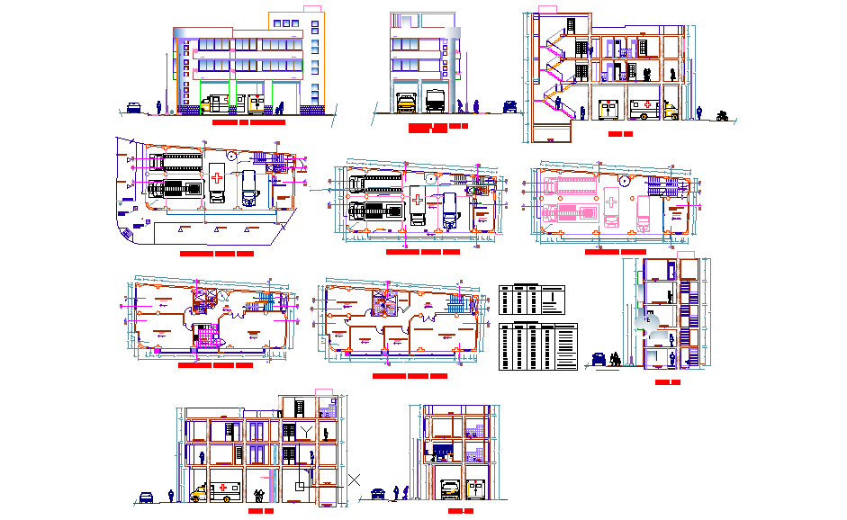 In addition to the plans, the project includes section details and elevation views that illustrate the building’s vertical alignment, façade elements, and spatial proportions. These sections highlight room heights, structural components, ventilation routes, and natural lighting features important for patient care and staff workflow. This DWG plan is ideal for architects, civil engineers, and healthcare planners seeking a clear and detailed clinic layout with functional zoning and accurate technical detailing. It supports design presentation, approval processes, and construction coordination for medical facility development.