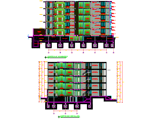 Section apartment flat detail dwg file, including dimension detail, naming detail, section A-A’ detail, section B-B’ detail, etc.