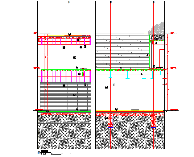 X crane court section plan detail dwg file, with leveling detail, foundation plan detail, door detail, etc.