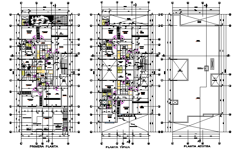 Planning multi family detail dwg file, including centre line plan detail, section line detail, cut our detail, dimension detail, naming detail, etc.