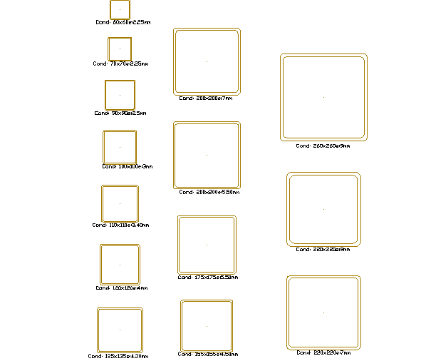 Ecoconduven section structural tubes square plan detail dwg file, with naming detail, etc.