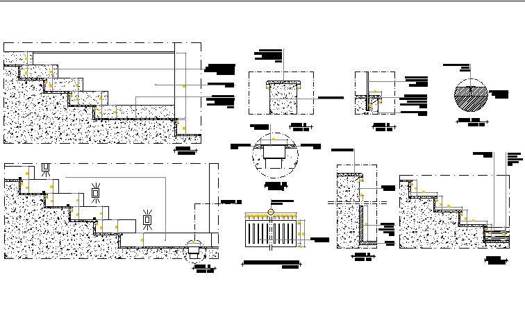 Stair section detail dwg file, with dimension detail, naming detail, tread and riser detail, etc.