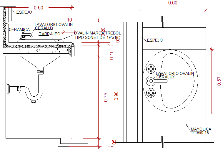 Sink elevation and plan detail dwg file, including dimesion detail, naming detail, pipe detail, treap detail, etc.