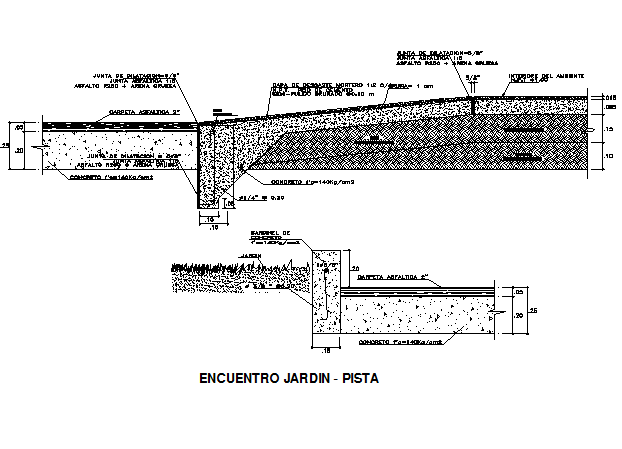 Encounter garden track section detail dwg file, with landscaping grass detail, naming detail, dimension detail, etc.
