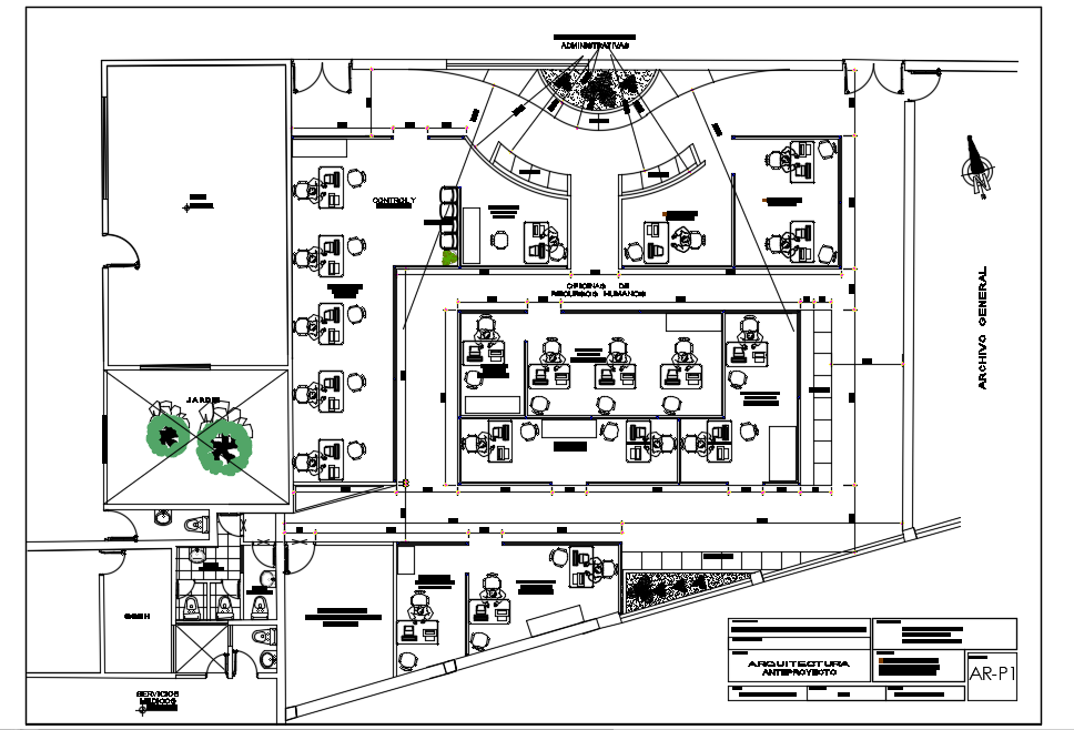 Office of human resources dwg file.Drawing labels, office detailing, furniture detailing, structural detail plan with section and elevation working plan in AutoCAD format.