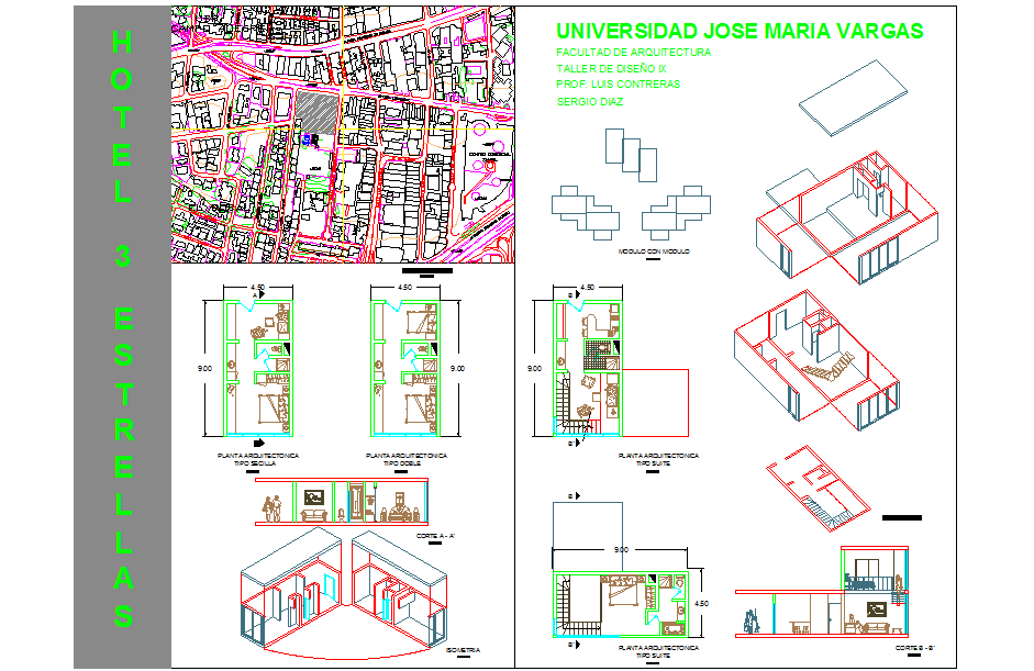 The project also displays 3D isometric room views, showcasing the interior arrangement from various angles and improving spatial understanding for designers. These visualizations help architects and interior planners interpret guest room flow, visibility, and ergonomic placement of key elements. The layout includes single rooms, double rooms, and suite configurations, all designed to meet modern hospitality standards. This DWG is ideal for architects, civil engineers, interior designers, and hotel planners seeking references for efficient room planning, modular hotel design, and coordinated architectural detailing. With its clear diagrams and well-organized elements, the drawing supports the development of functional, contemporary, and visually appealing hotel bedroom spaces.