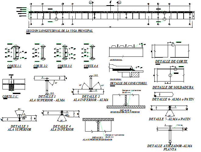 Bridge section plan detail dwg file, with dimension detail, naming detail, centre line plan detail, section line detail, etc.