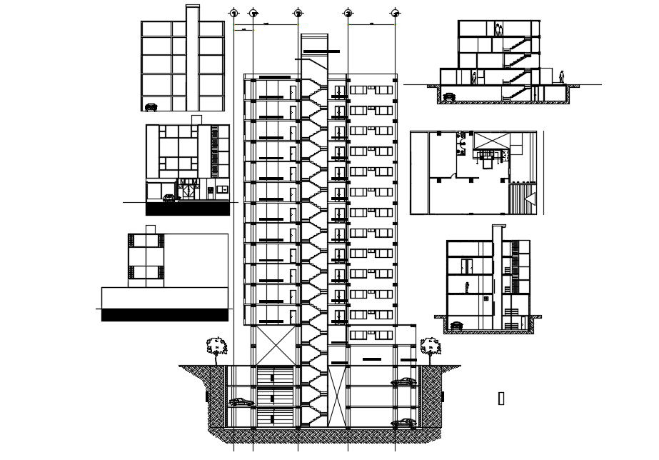 Office buildings dwg file. Office elevation of the various building, glass building, layout plan of an Office building etc.