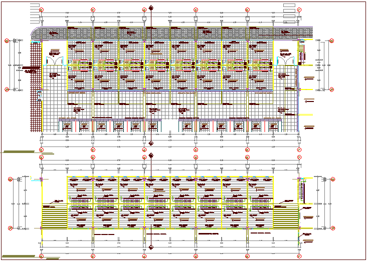 Structural design of first and second floor plan for zonal market dwg file in first floor plan with view of area with wall,column with necessary dimension.