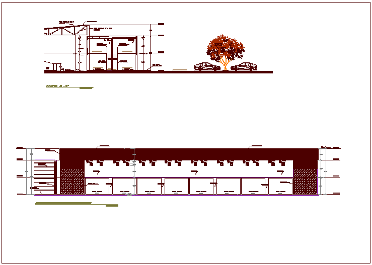 Steel structure view for zonal market with elevation and section view dwg file in section with circular tube with truss support area with its connection of tube and