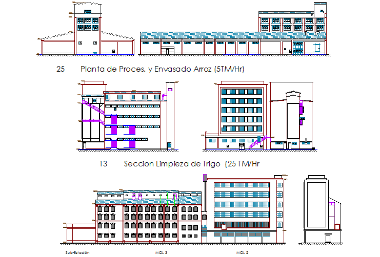 Elevation and section mill plan detail dwg file, with front elevation detail, section detail, side elevation detail, etc.