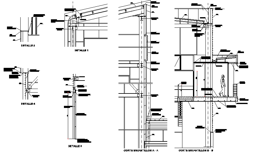 Wall section plan detail dwg file, including reinforcement detail, section line detail, naming detail, etc.