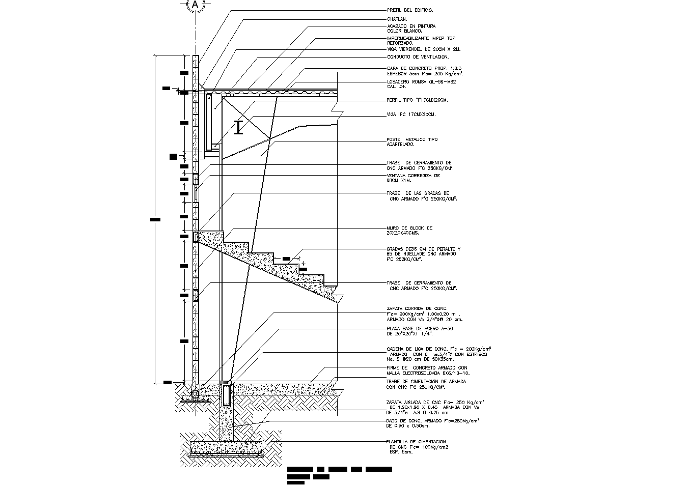 Rafter sand beam sin facade of university gymnasium building. Beam with total detailing in a 2D plan.