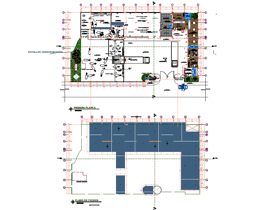Ground floor and first-floor plan detail dwg file, with centre line plan detail, section line plan detail, dimension detail, naming detail, etc.