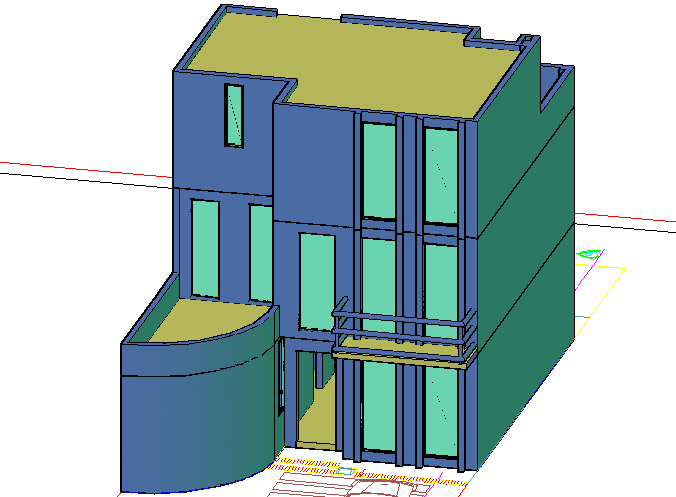 3 story single family detail dwg file, with balcony detail in reeling detail, glass detail, tarrece detail, etc.