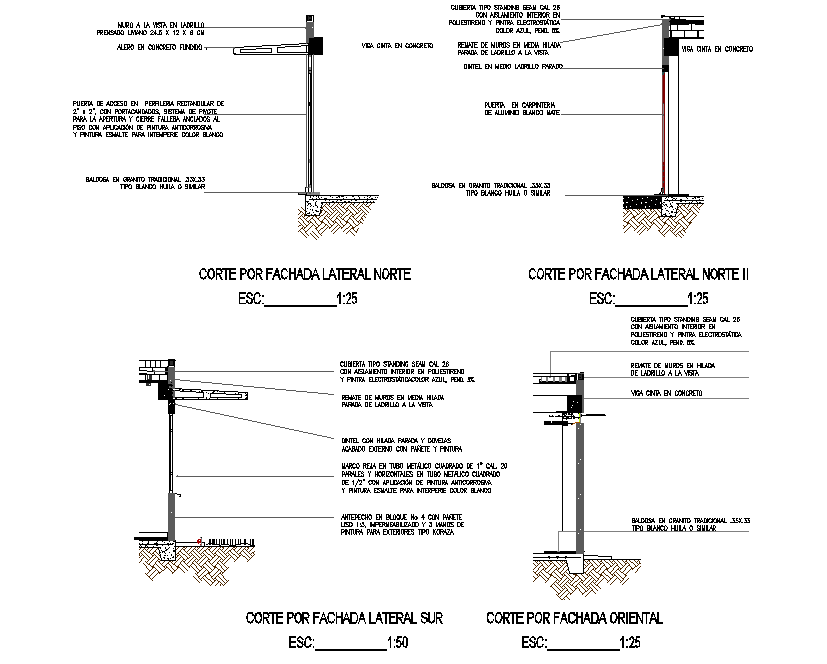 Facades detail dwg file, with scale 1:25 detail, dimension detail, nmaing detail, concret mortar detail, etc.