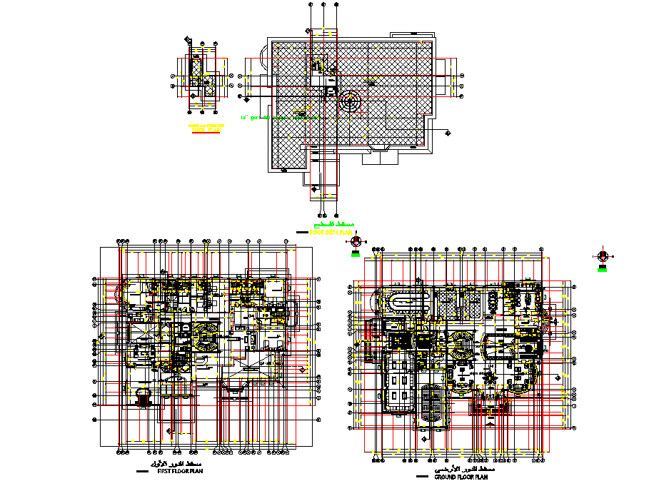 Luxurious villa detail dwg file, with north direction detail, centre line plan detail, diension detail, naming detail, ground floor plan to tarrece floor plan detail, etc.