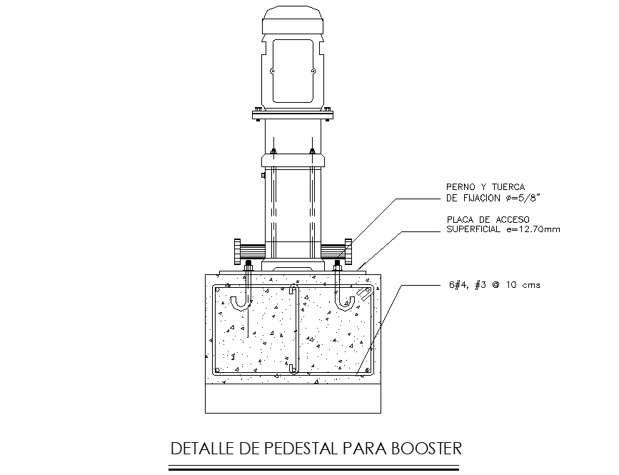 Detail of pedestal for booster dwg file, including naming detail, concrete mortar detail, bolt nut detail, etc.