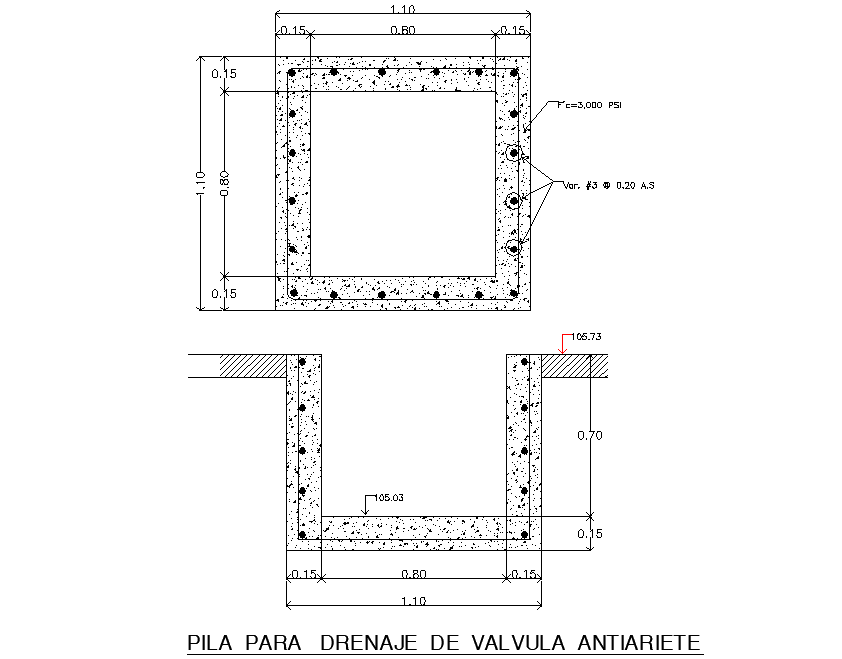 Battery for drainage of Anti-tightening valve plan detail dwg file, with dimension detail, reinforcement detail, naming detail, etc.