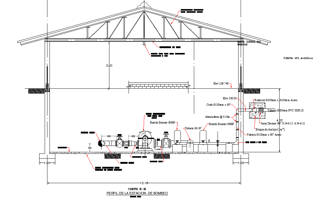 Section Booster station plan detail dwg file, with centre line detail, dimension detail, naming detail, etc.