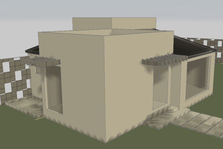 3 D home detail dwg file, with front elevation detail, roof detail, stair detail, projection detail, etc.