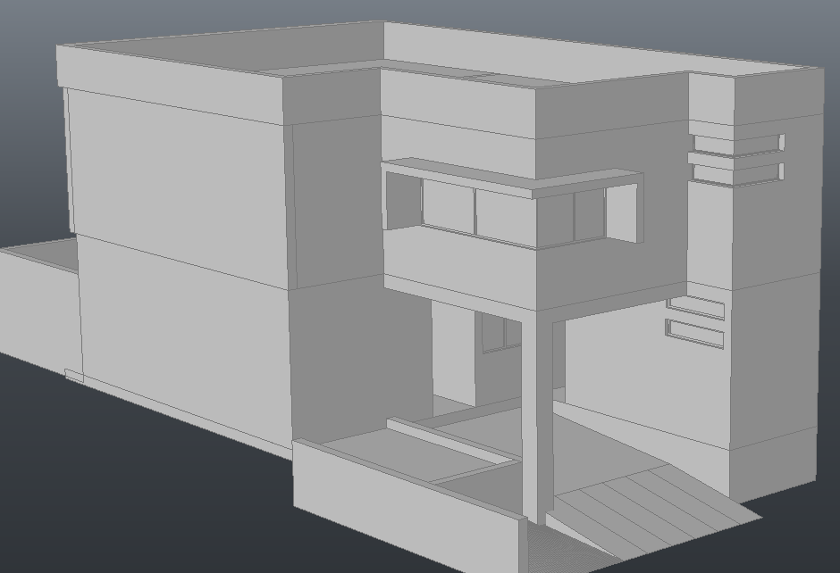 Two story single family dwelling in 3 d plan detail dwg file, with front elevation detail, stair plan detail, etc.