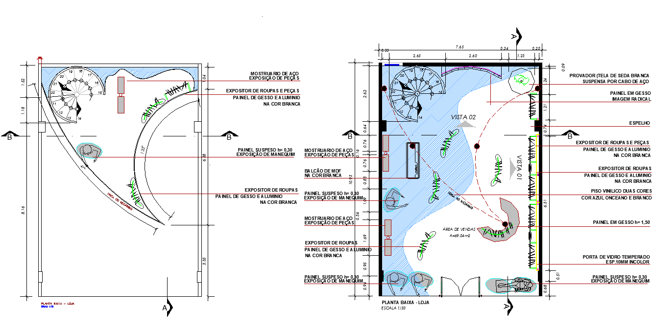 Planning Shop sports products detail dwg file, including section line detail, dimension detail, naming detail, spiral stair detail, etc.