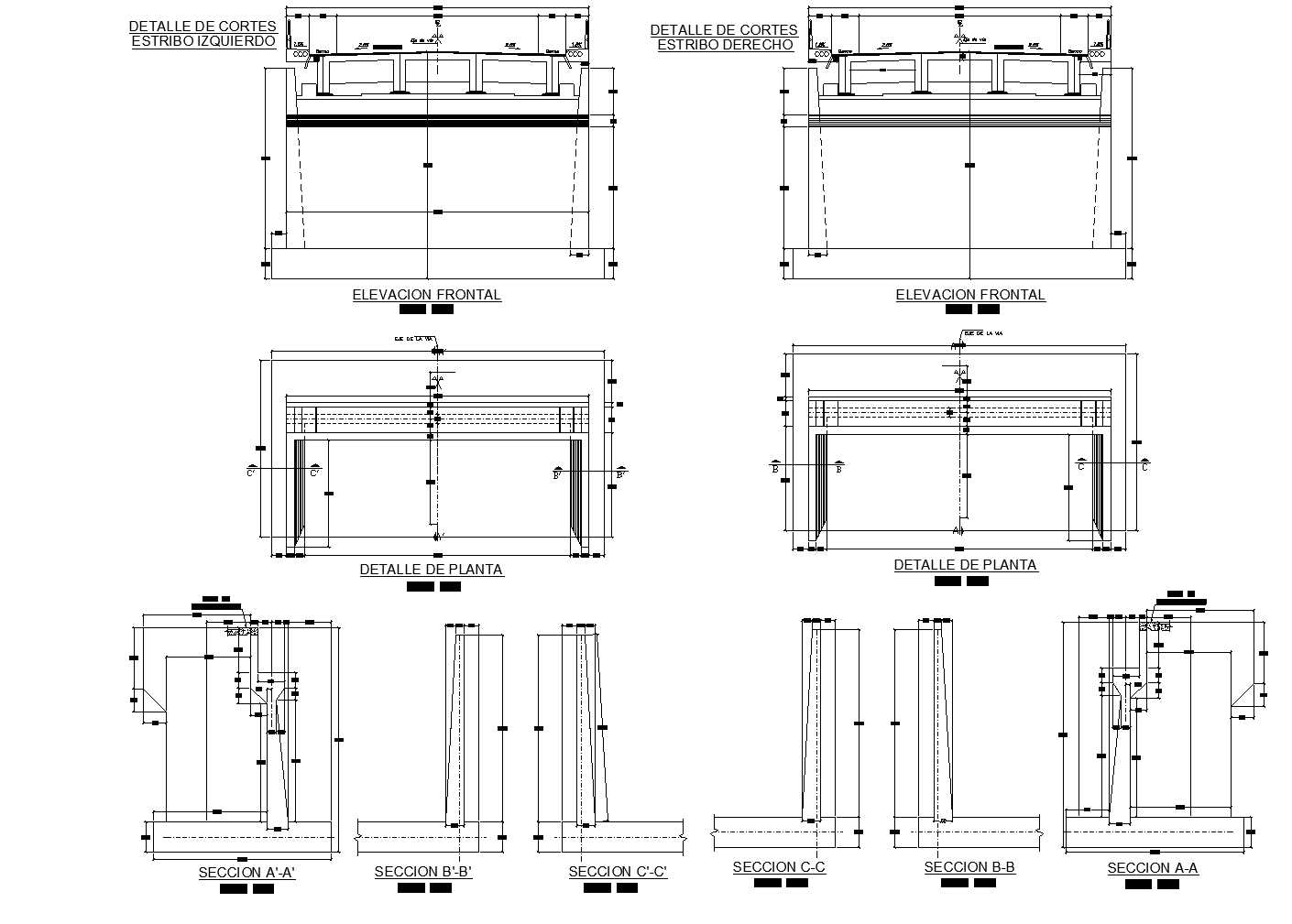 Detailed bridge inter oceanic section plan. Plan with elevations i.e., front elevation with detailed sections. 2D plan with detailed elevations.