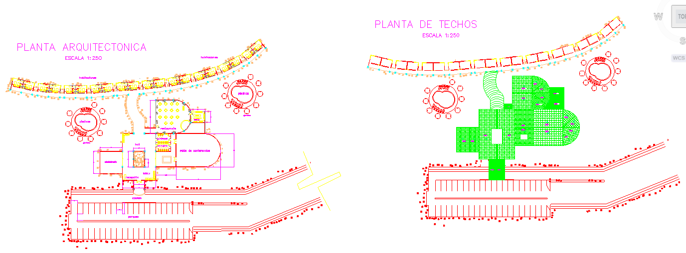 Hotel Plan DWG with Hall Restaurant Bedroom and Roof Layouts