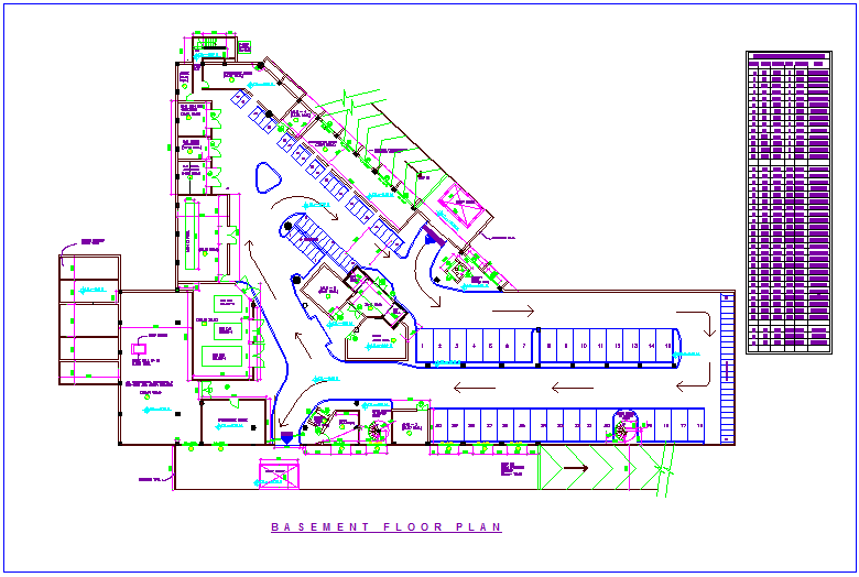 Basement plan of club house with door and window opening schedule dwg file file in plan with view of in-out way,security check point,wall and column view,maintenance office,air conditioning and electrical generation set,store area and parking area with its lot number and door and window opening schedule with necessary dimension.