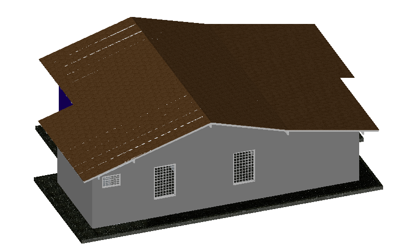 House 3D view design dwg file in view with ground area with air vent,wall and support view with terrace area and roof view in triangle position and door and window area view with designer wall view of 3d of house.